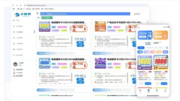如果你在寻找一个靠谱、省心、收益可观的流量卡推广平台,那么卡世界号卡平台值得你花3分钟深入了解。这个被百万代理验证过的平台,或许正是你一直在寻找的答案。 核心功能:直连运营商产品、定义下游渠道,通过站外分销模式获取直佣金。 分销渠道管理:将二次包装后 / 未包装的运营商商品,自定义划分分销渠道并供给下游渠道商 分销订单交接:获取下游下单数据后,在运营商端完成下单操作 分销数据交易:将用户下单成功、物流、运营商等信息同步至下游 分销数据统计:汇总分析不同渠道的分销达成数据(含佣金、利润等维度)